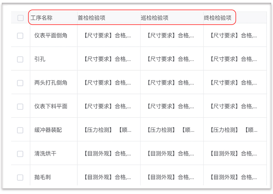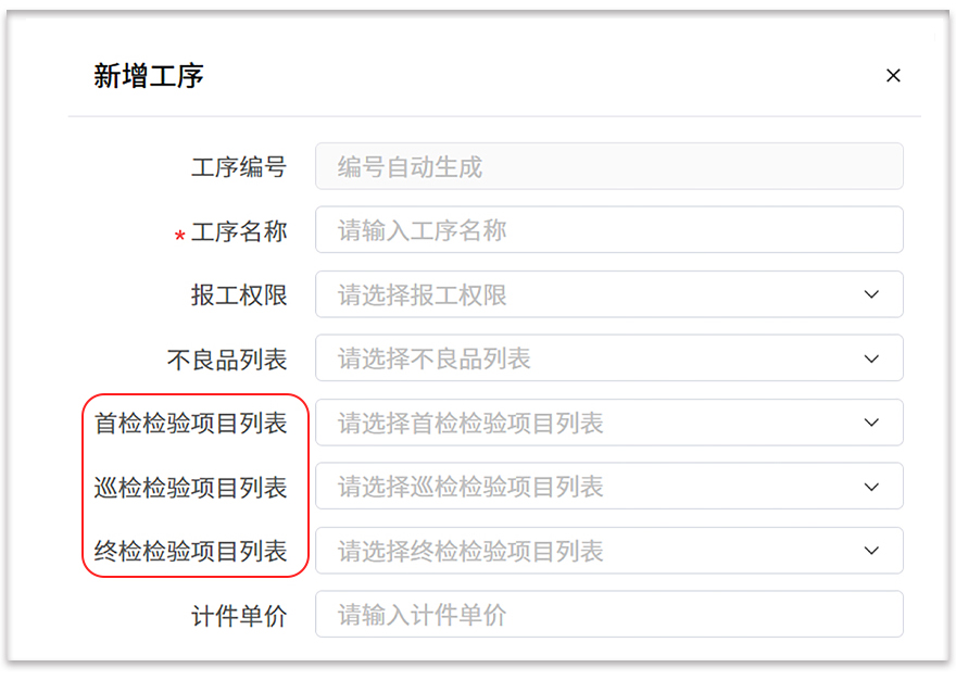 把已设置的检验项目,按“首检/巡检 /终检”不同需求,挂接到对应生产工序上