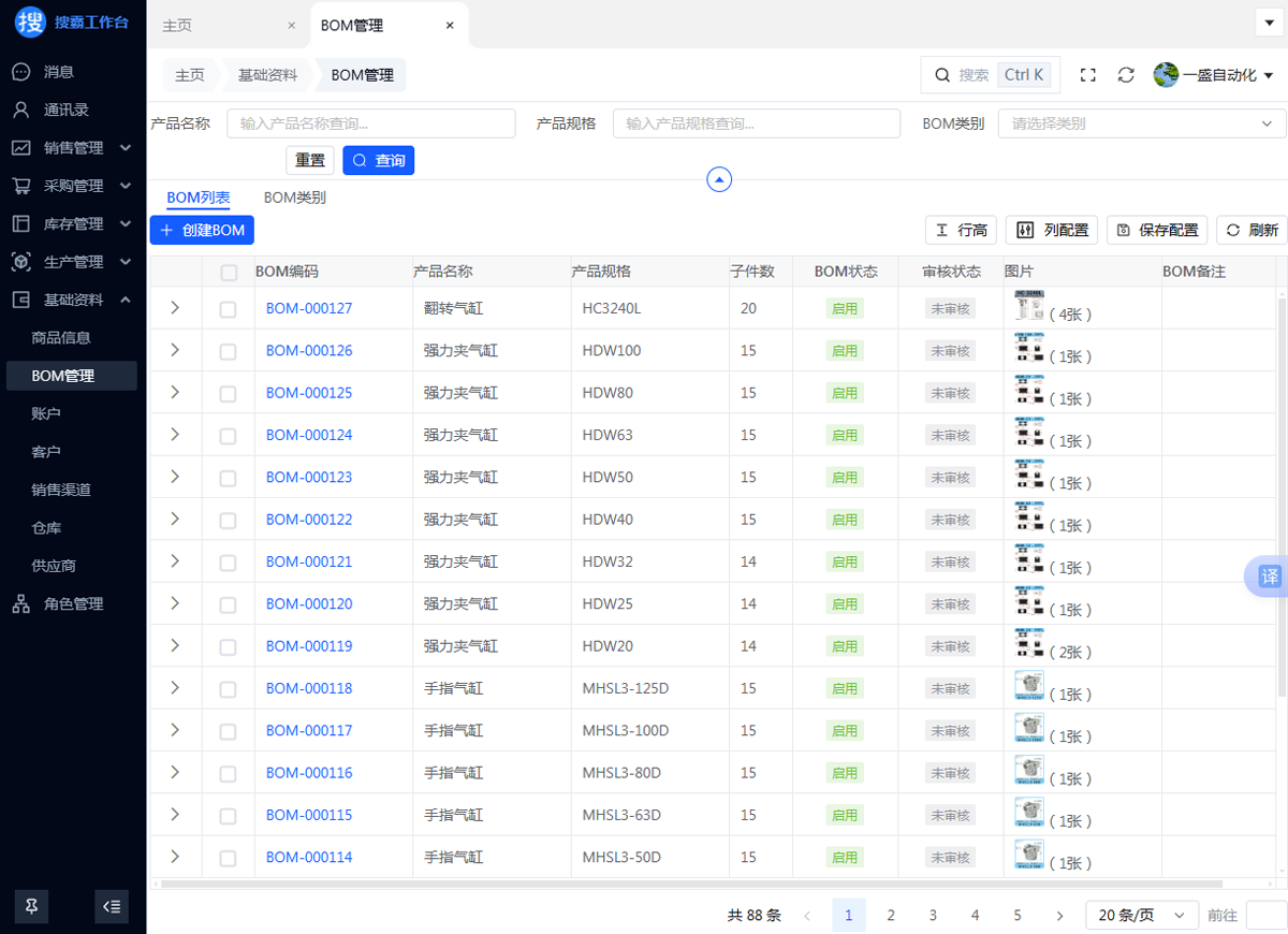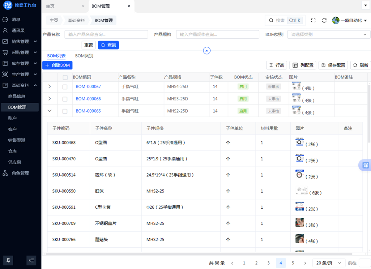 商品信息 BOM 管理 账户 客户 销售渠道 仓库 供应商