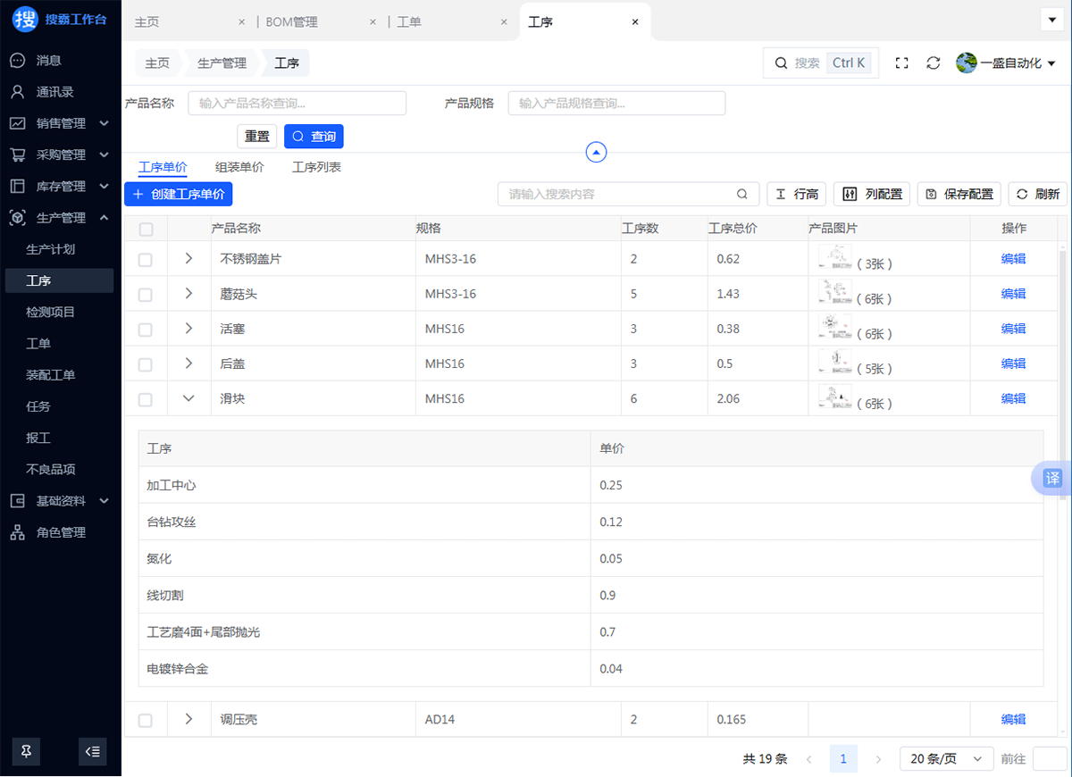 因为有了工序单价及工艺路线,在创建工单的时候,会自动拉出前面设置的工序及工艺路线,非常方便。